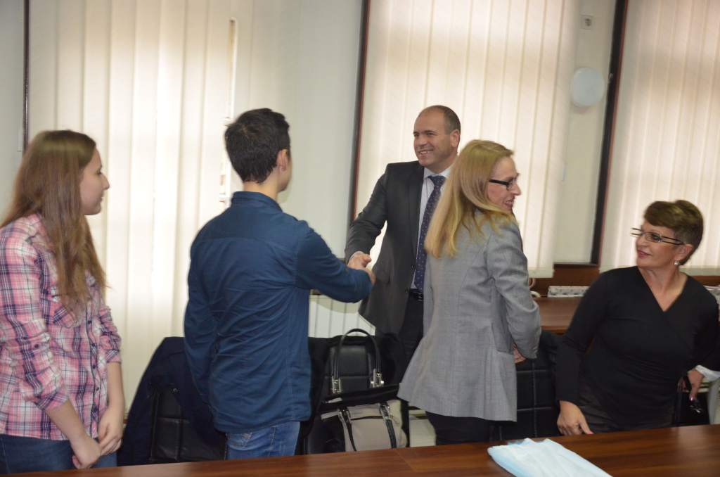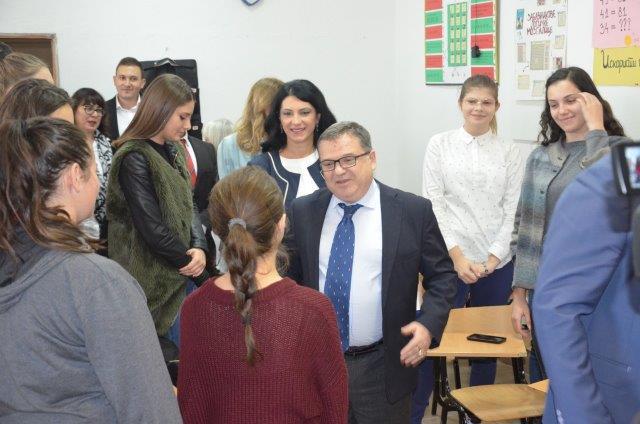 Подоцна, Градоначалникот и амбасадорот заедно ја посетија гимназијата “Гоце Делчев“ , чии ученици се дел од проектот за соработка меќу училишта од Куманово и Франција.